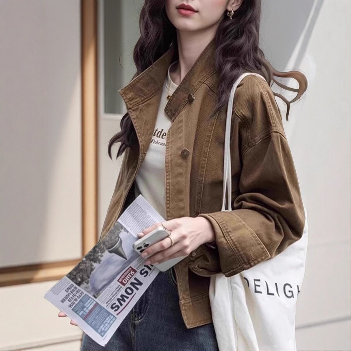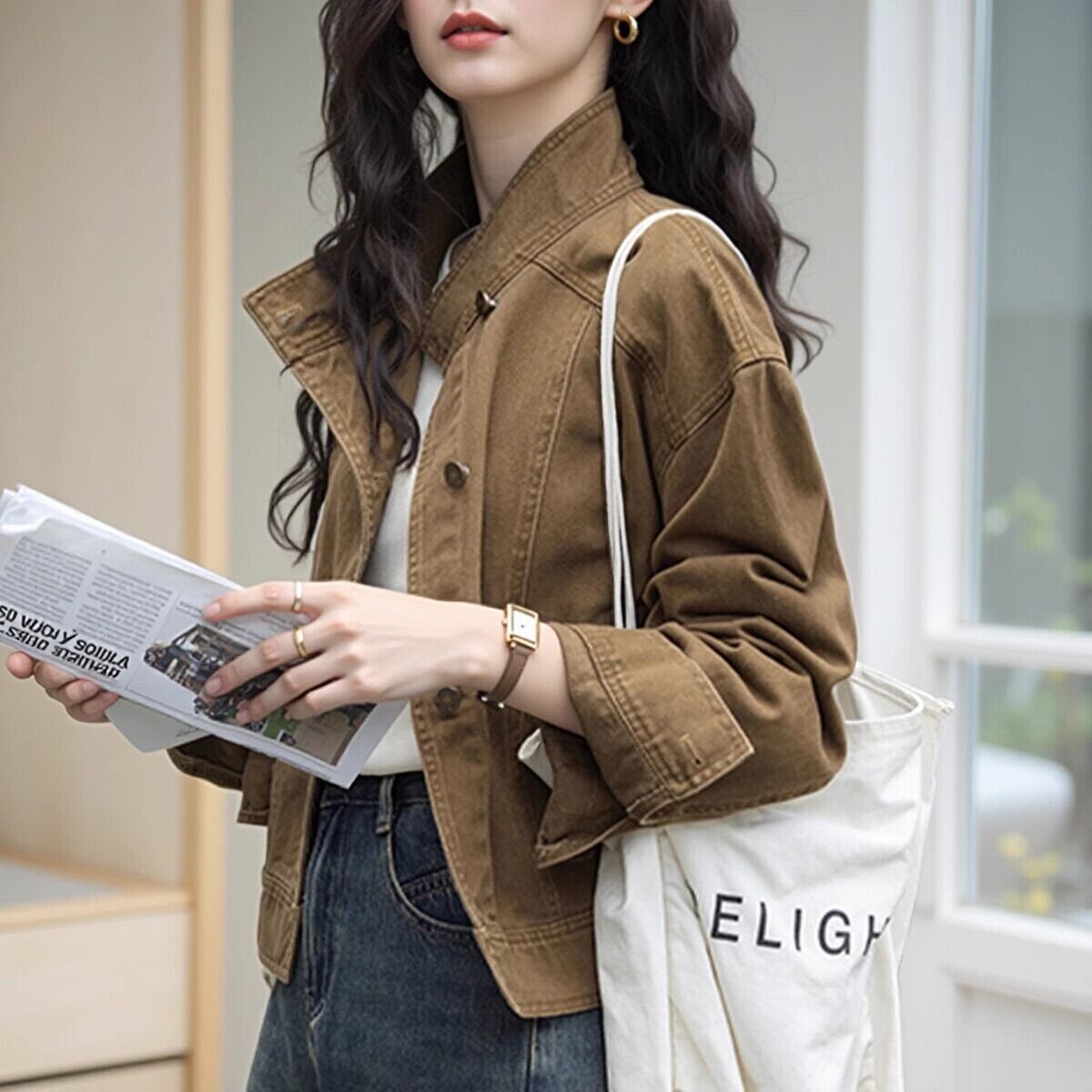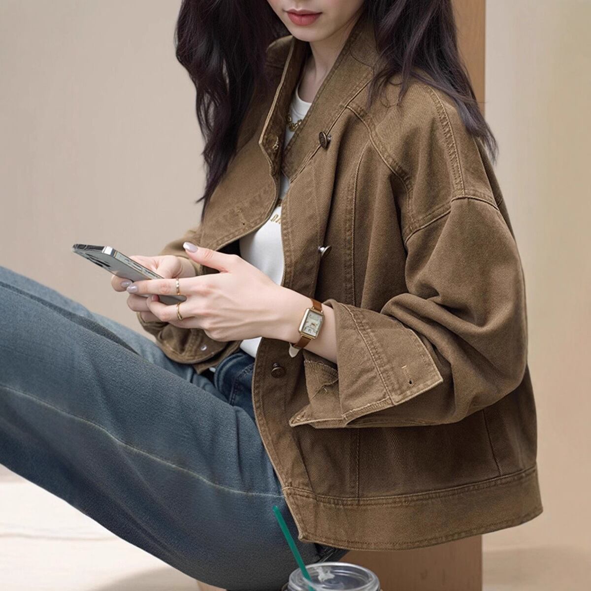 【ジャケット】 デニム ジャケット レディース アウター 春 秋 冬 20代 30代 40代 デニムジャケット ミドル ジャケット アウター ジージャン gジャン デニム きれいめ 可愛い かっこいい キャメル 茶色 S M L XL