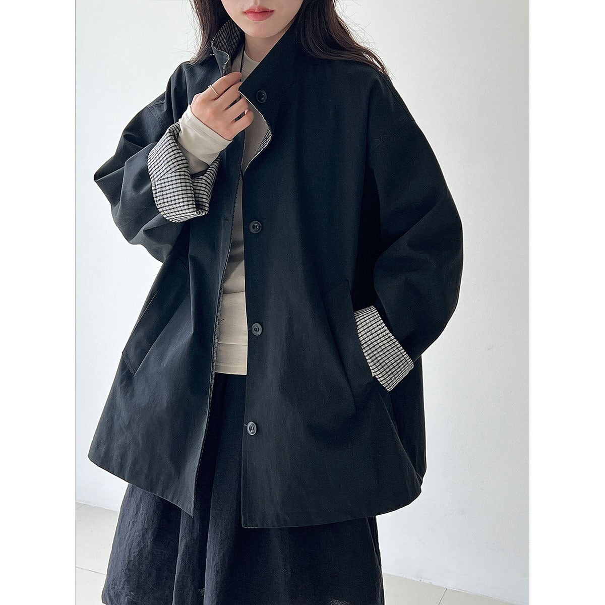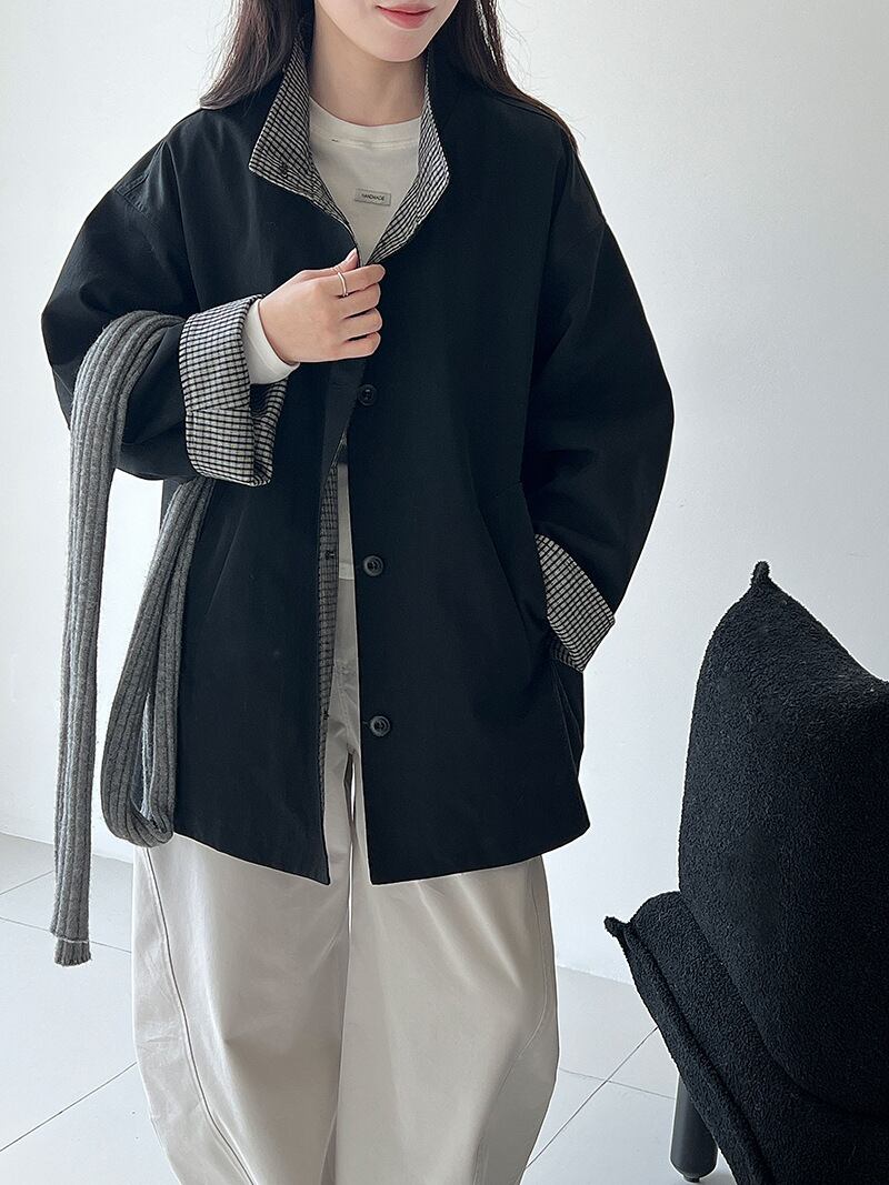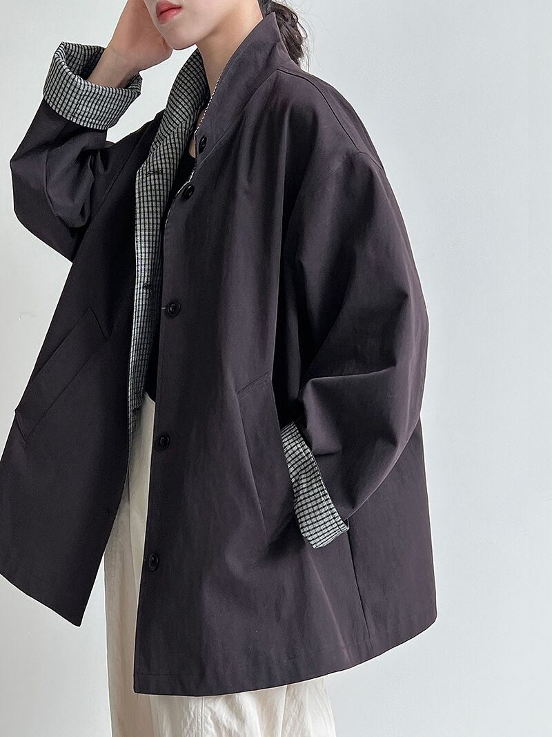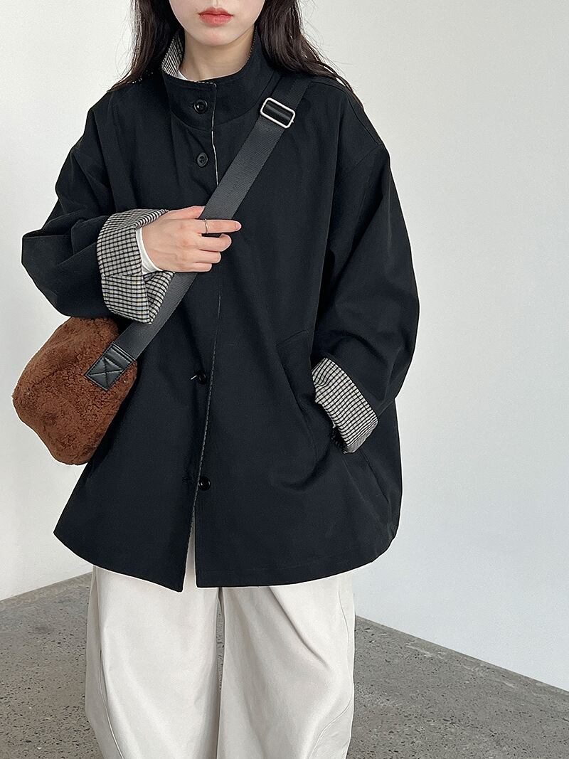 裏地がチェック柄の大人可愛いステンカラーコート。