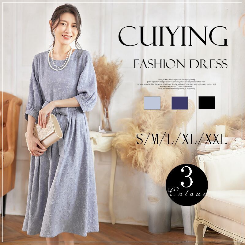 【パーティードレス】大きいサイズ パーティードレス かっこいい 結婚式 お呼ばれドレス 結婚式のお呼ばれ ワンピース シンプル ミモレ ワンピース 20代 30代 40代 成人式 同窓会 卒業式 入学式 卒園式 入園式 謝恩会 七五三 お宮参り 袖あり 体型カバー フォーマルドレス 結婚式フォーマル お呼ばれ 二次会 フォーマルワンピース おしゃれ ブルーグレー 水色 ネイビー 青 ブラック 黒 S M L XL 2XL