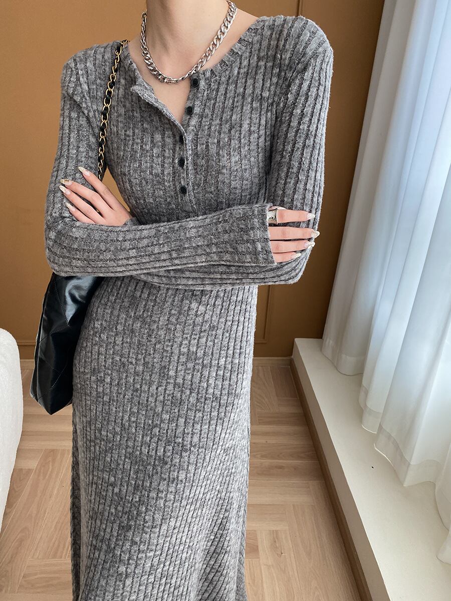 ナチュラルなマーメイドラインのリブニットワンピース。