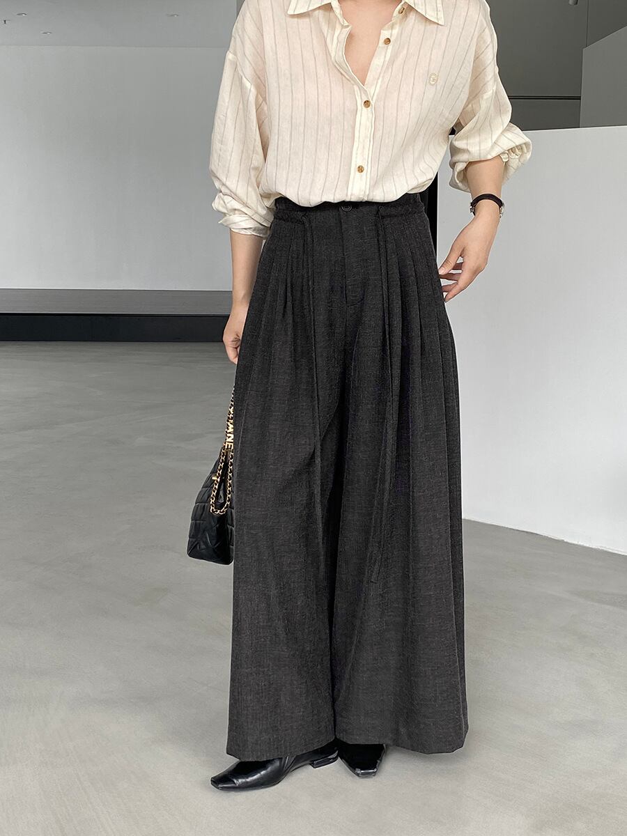 大人エレガントなハイウエストワイドパンツ。