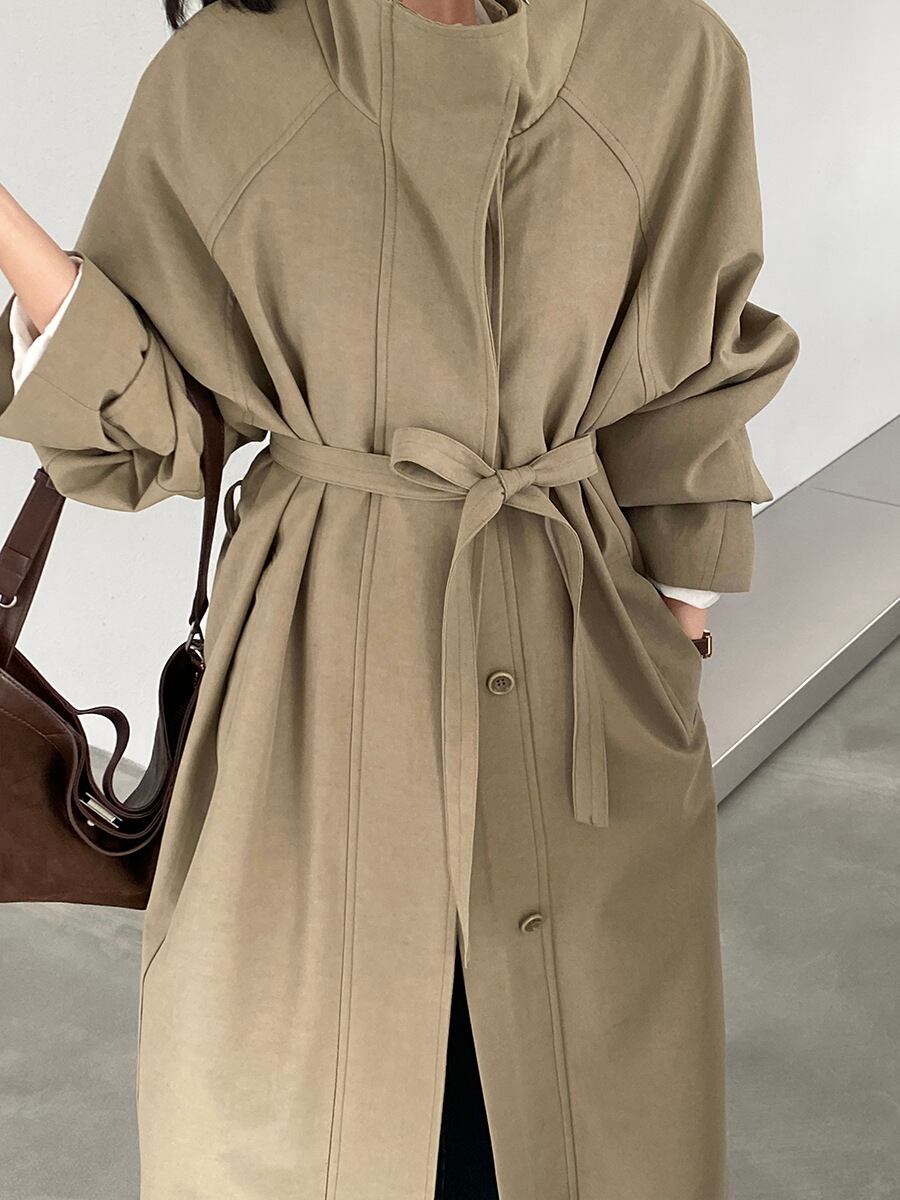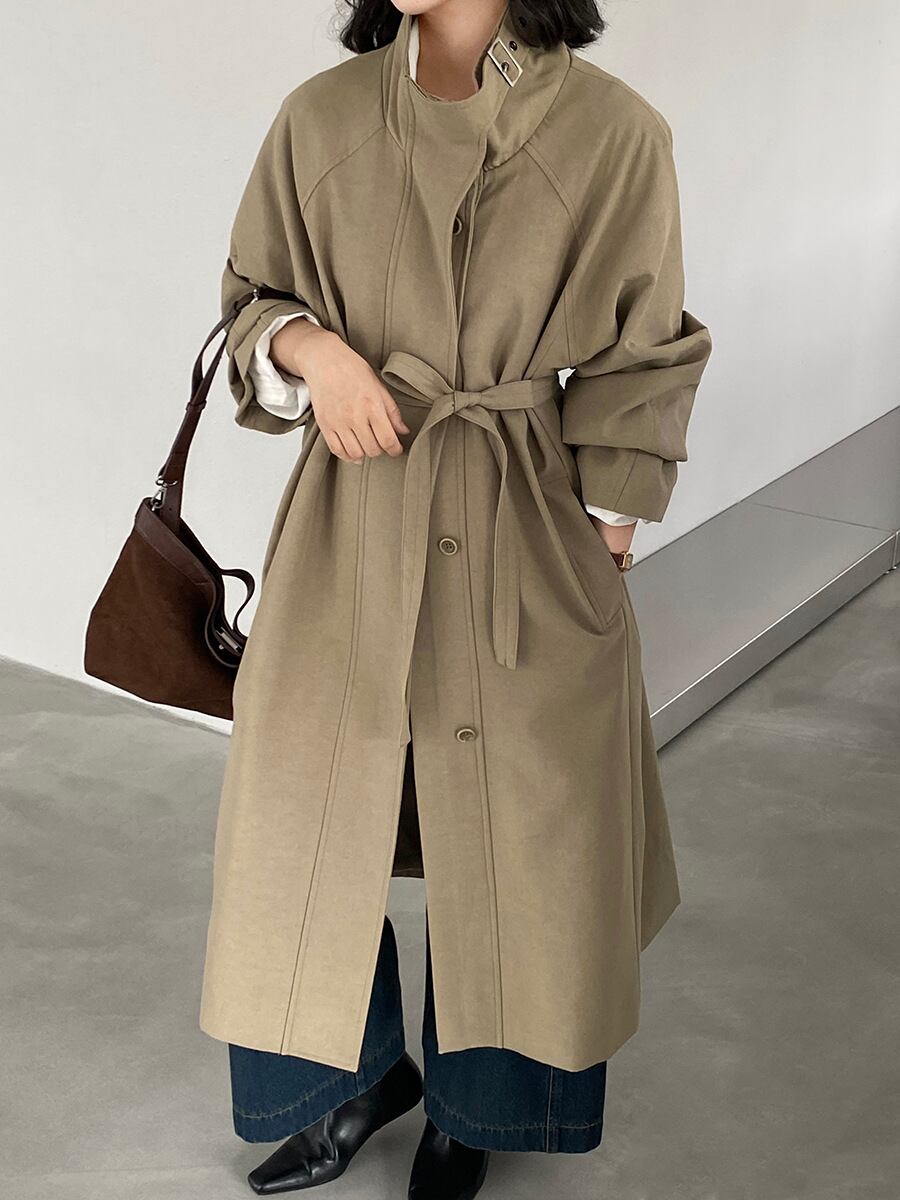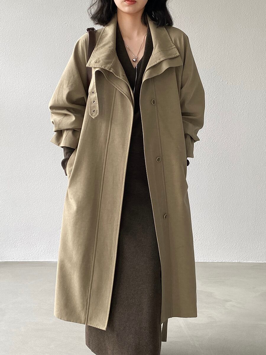 大人可愛いシンプルなステンカラーコート。