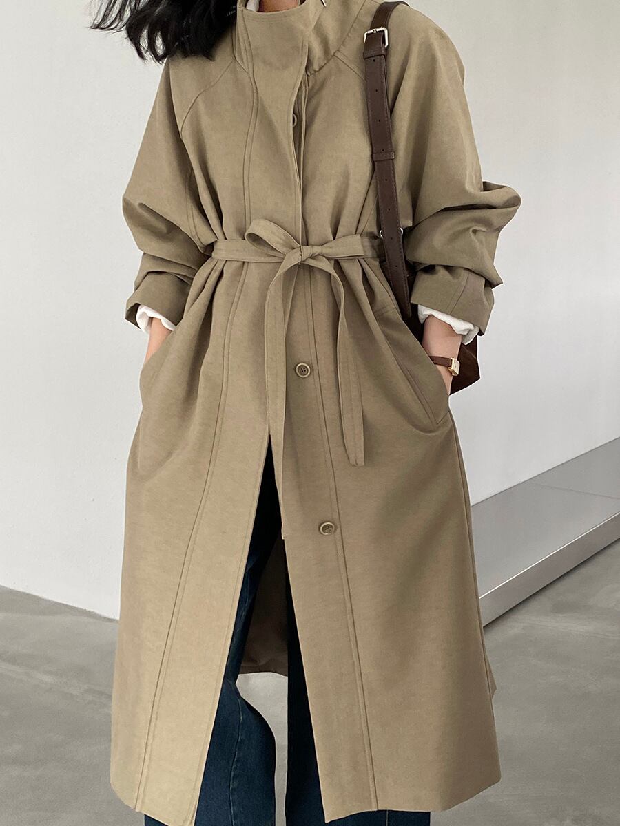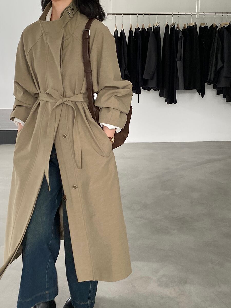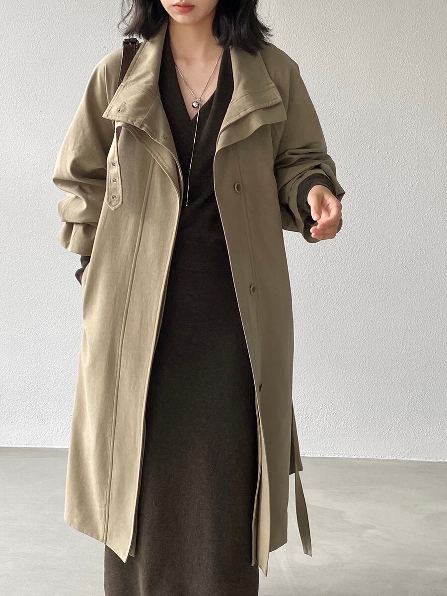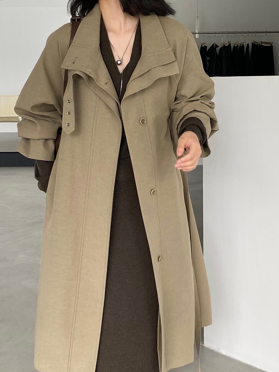 大人可愛いシンプルなステンカラーコート。