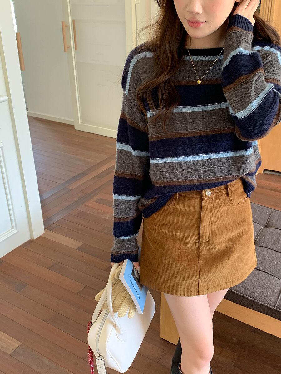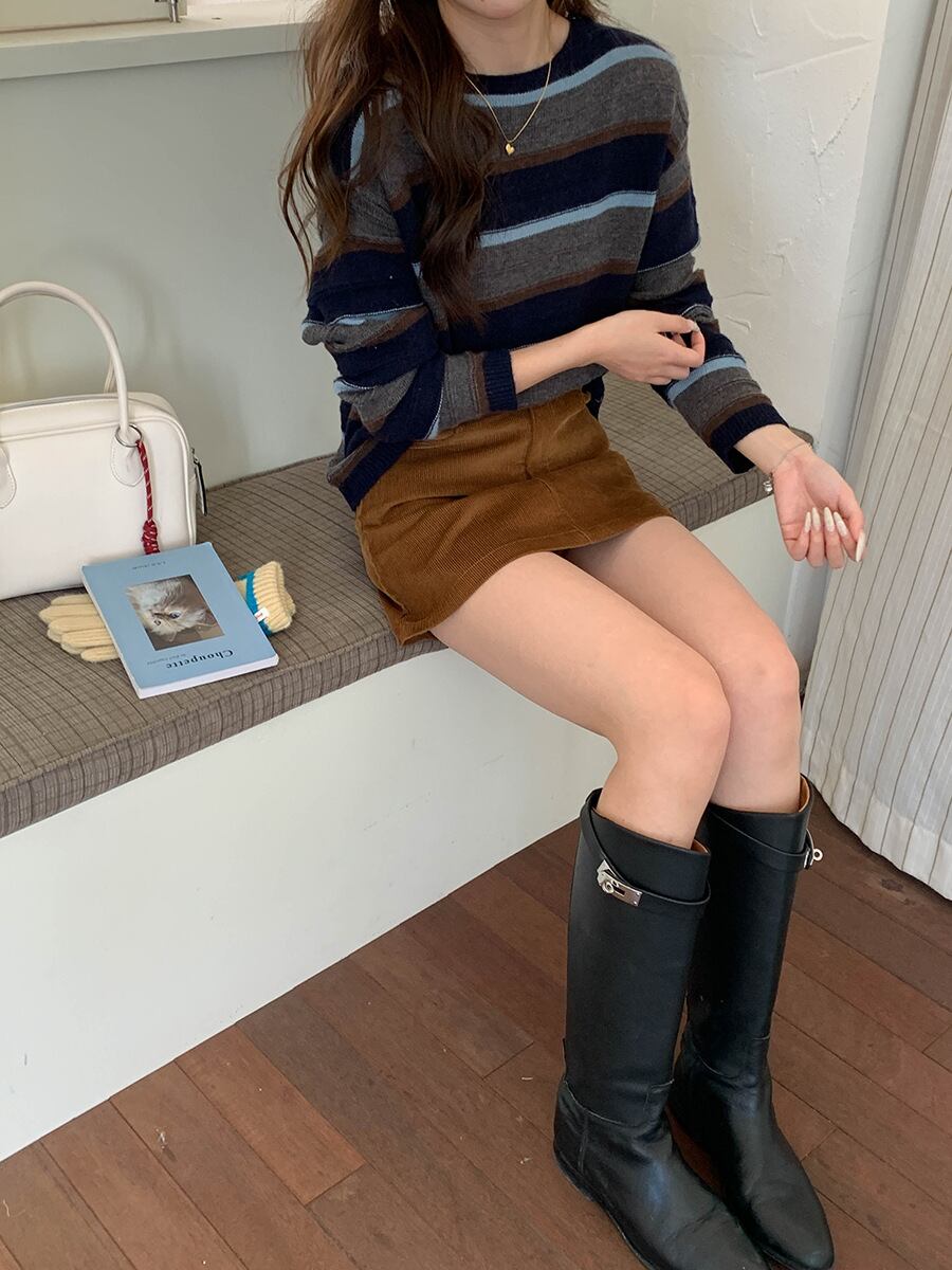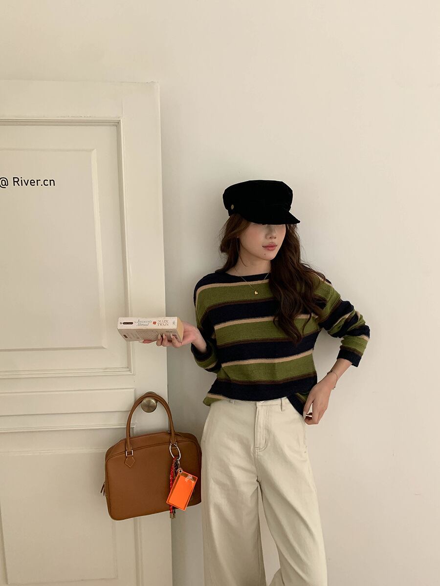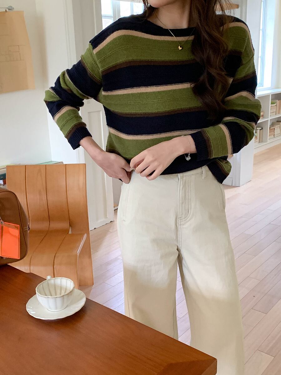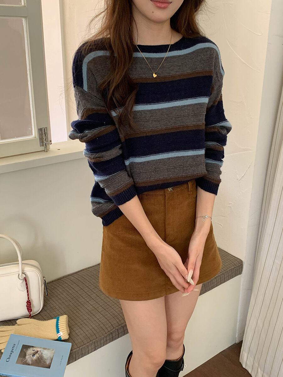 【ニット】ニット セーター レディース おしゃれ かわいい 韓国 トップス長袖 20代 30代 40代 春 秋 冬 レディース ニット ブルー×グレー 青 ブルー×グリーン 緑