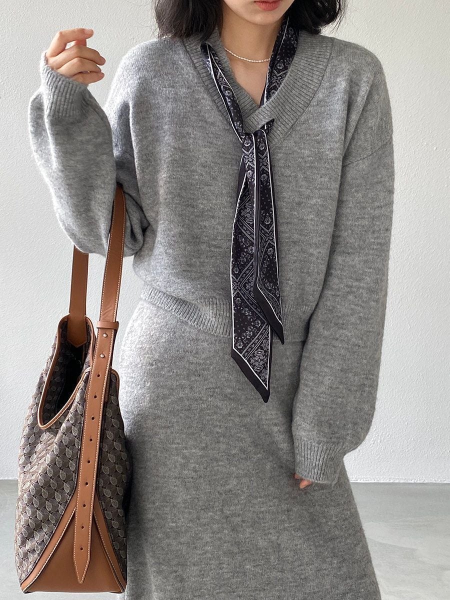 【セットアップ】 セットアップ レディース おしゃれ タイト スカート ニット セーター 春 秋 冬 20代 30代 40代 きれいめ カジュアル ダークグレー ライトグレー
