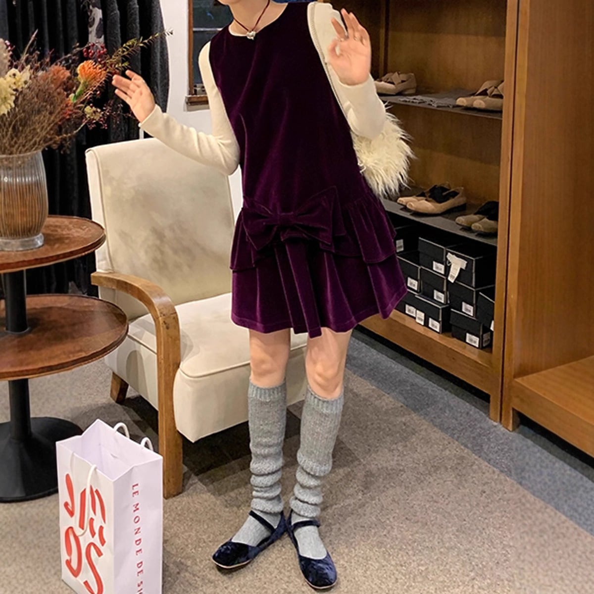 大人可愛いベルベット素材のミニ丈パーティードレス。