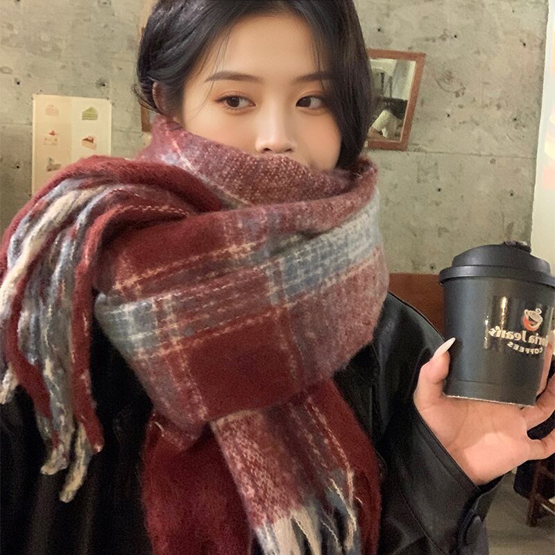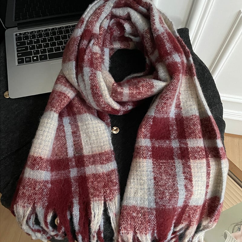 ふわふわ素材が大人可愛いチェック柄の大判マフラー。