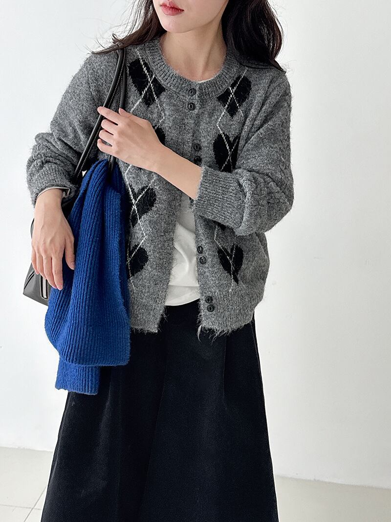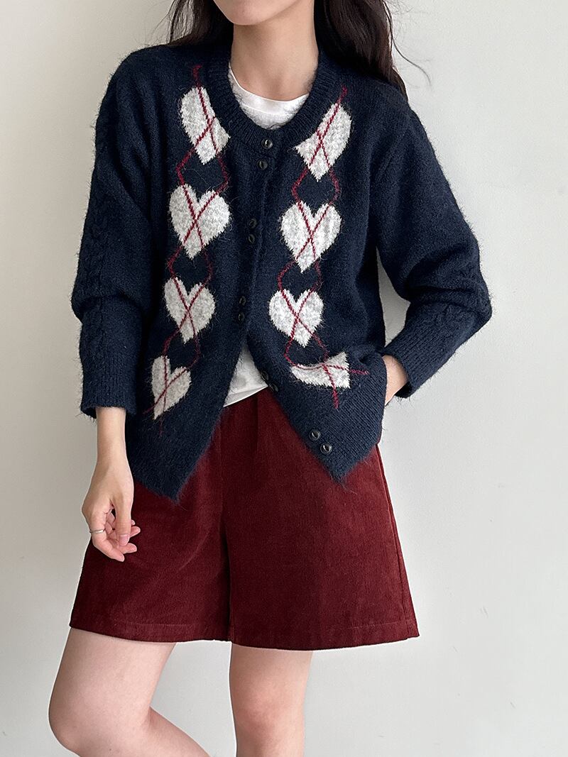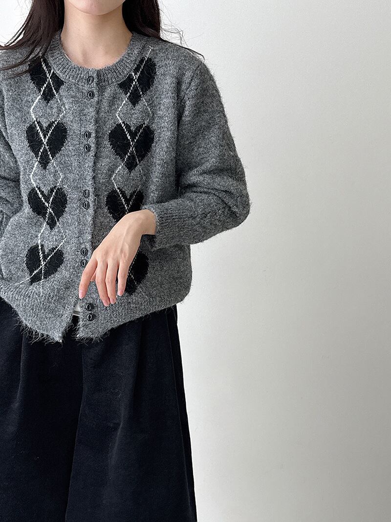 【カーディガン】 カーディガン レディース おしゃれ 韓国 春 秋 冬 20代 30代 40代 ニット カーディガン 長袖 トップス ハート グレー ネイビー青 ブラウン 茶色