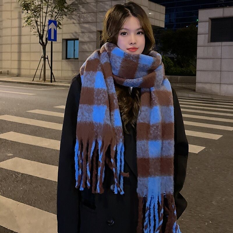 ふわふわ素材が大人可愛いチェック柄の大判マフラー。