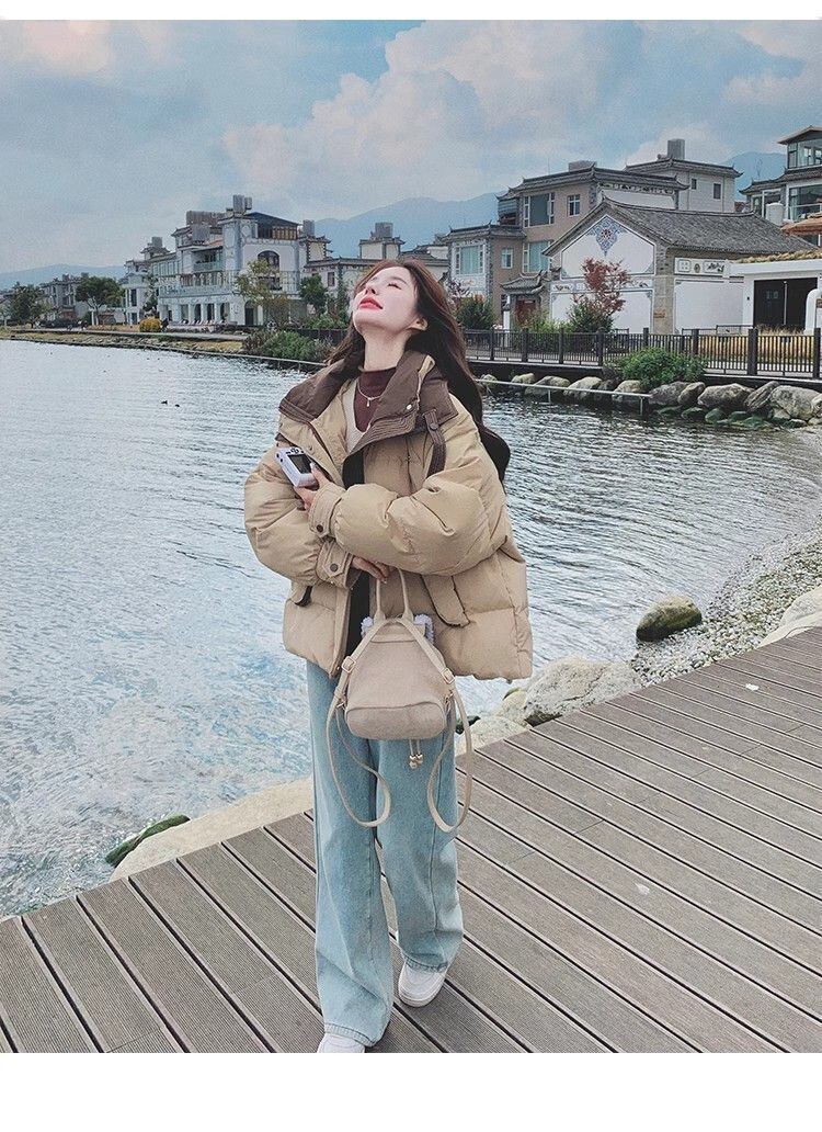 大人可愛いミドル丈のバイカラーダウンジャケット。
