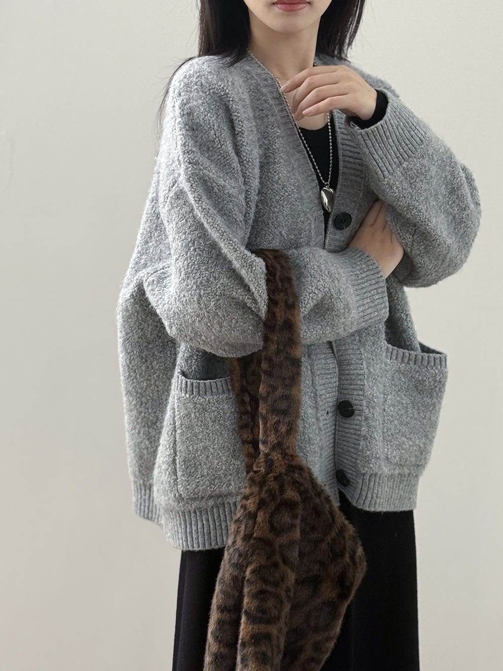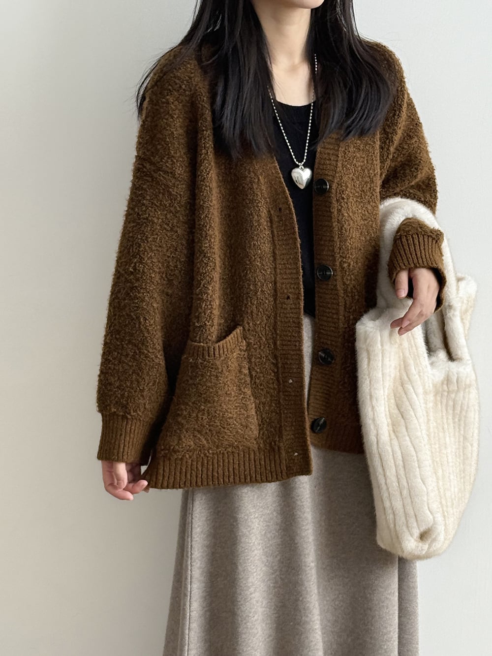 大人可愛いミドル丈のシンプルなカーディガン。