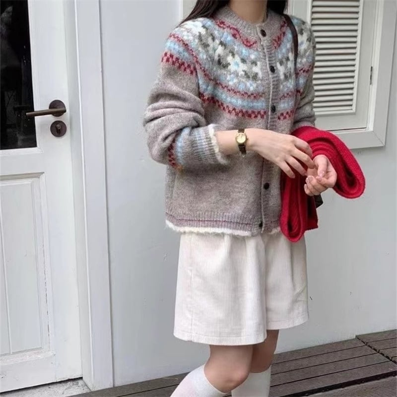 【カーディガン】 カーディガン レディース おしゃれ きれいめ 韓国 春 秋 冬 20代 30代 40代 ニット カーディガン 長袖 トップス ノルディック ベージュ グレー