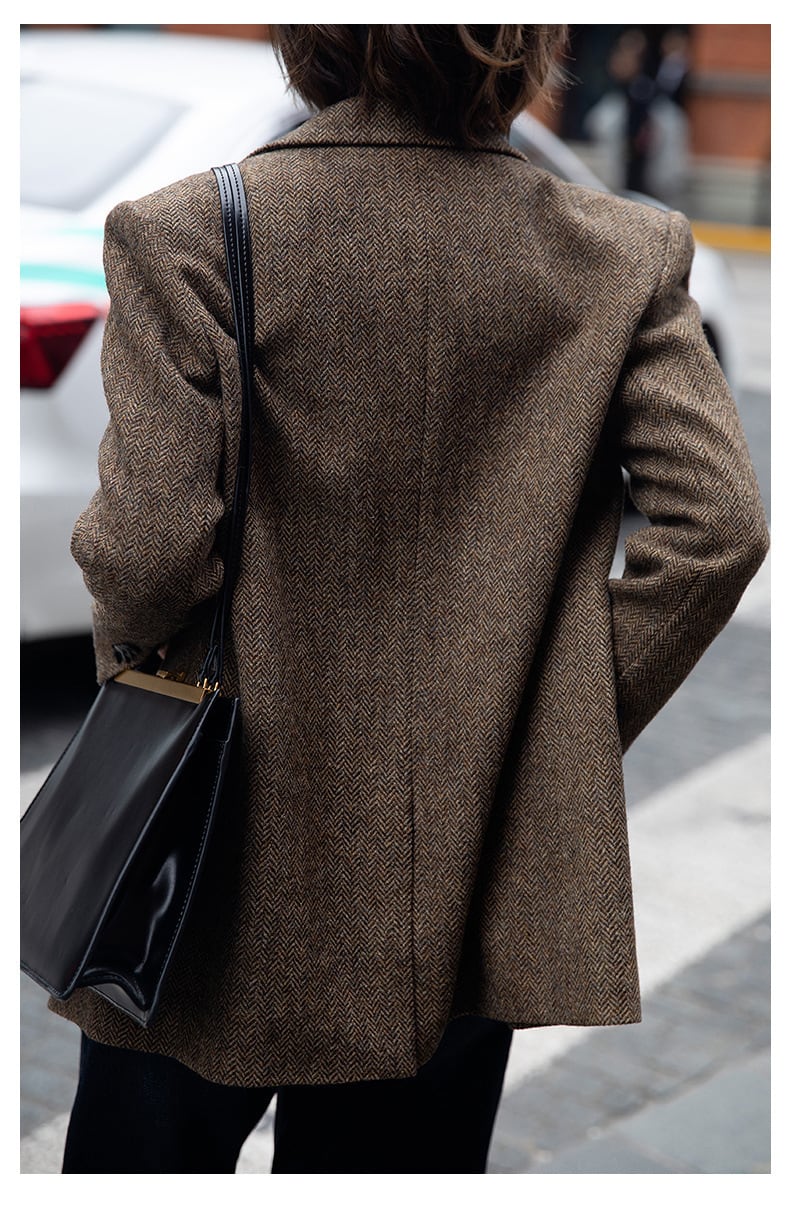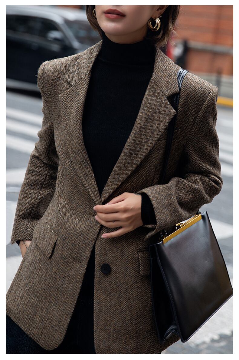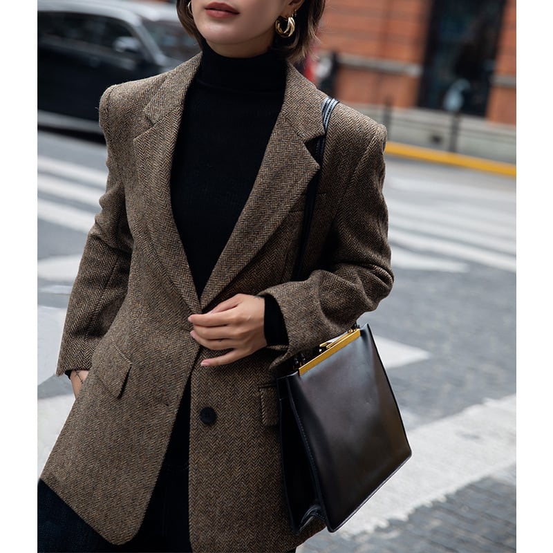 大人エレガントなヘリンボーンのテーラードジャケット。