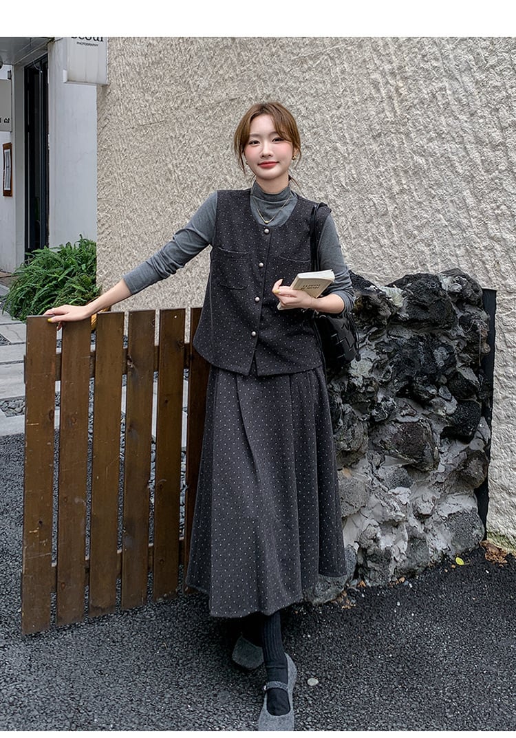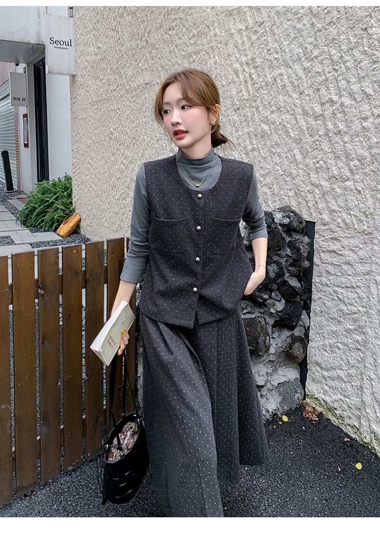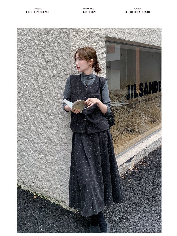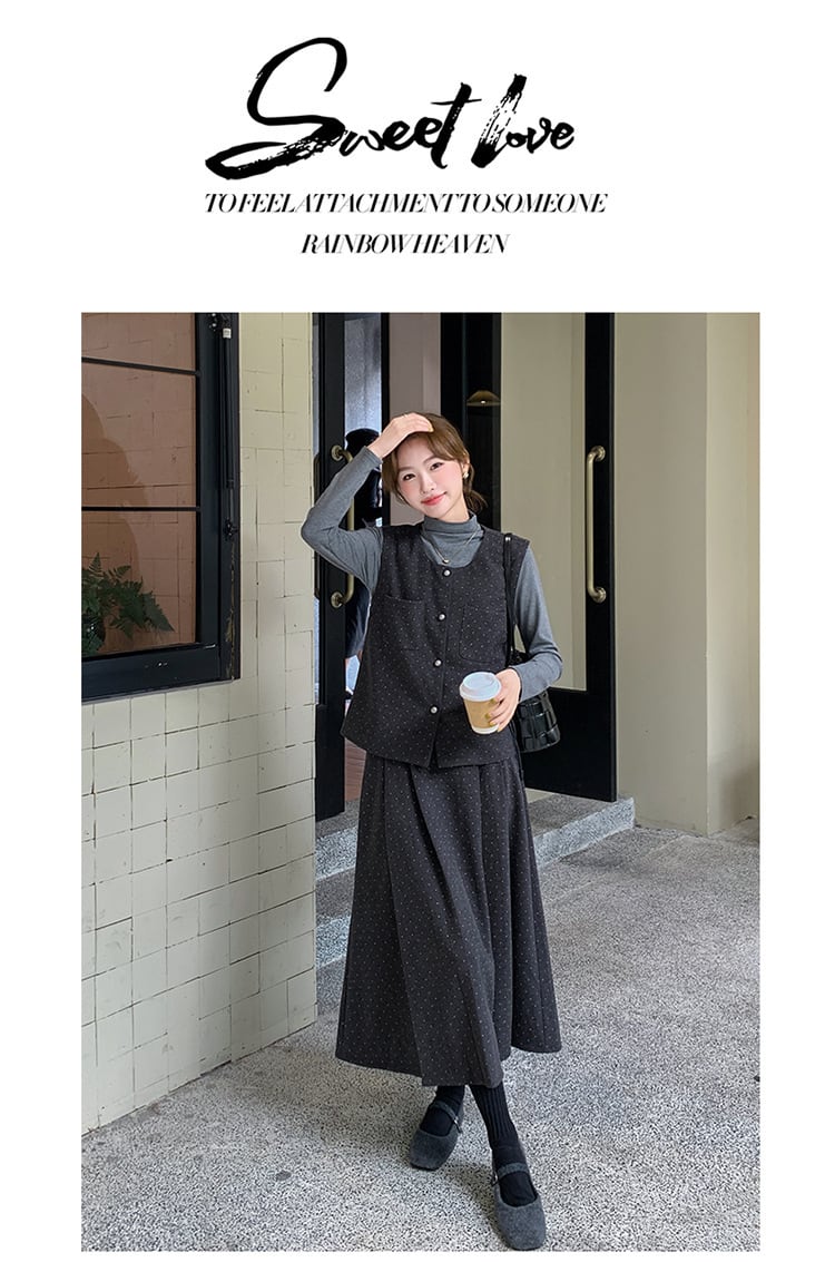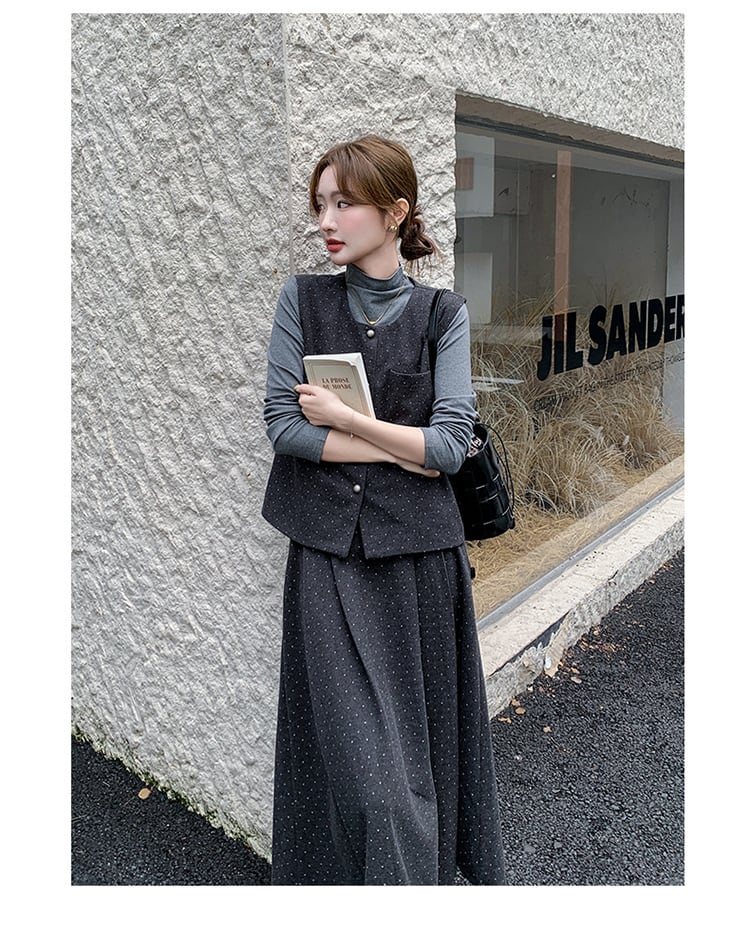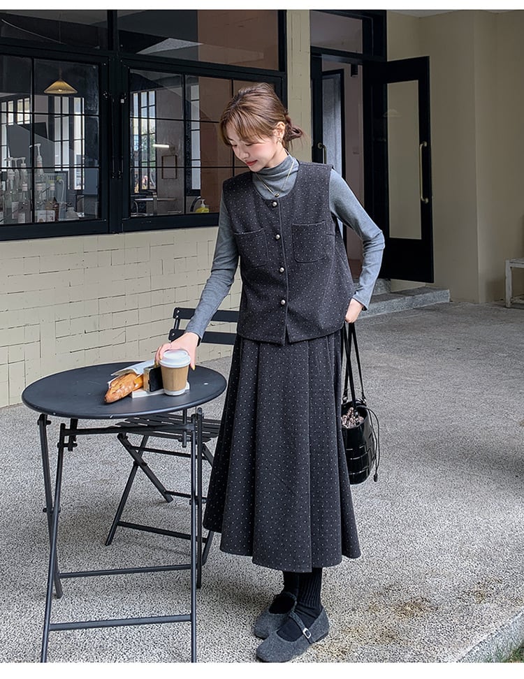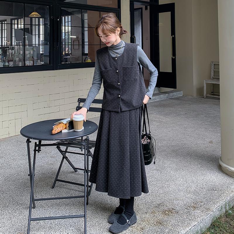 【セットアップ】 セットアップ レディース おしゃれ ママ プリーツスカート ジレ ベスト カットソー 春 秋 冬 20代 30代 40代 卒業式 入学式 卒園式 入園式 成人式 同窓会 謝恩会 きれいめ カジュアル ドット ダークグレー S M L