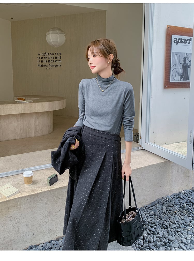 大人可愛いカットソー+ジレ+プリーツスカートのセットアップ。