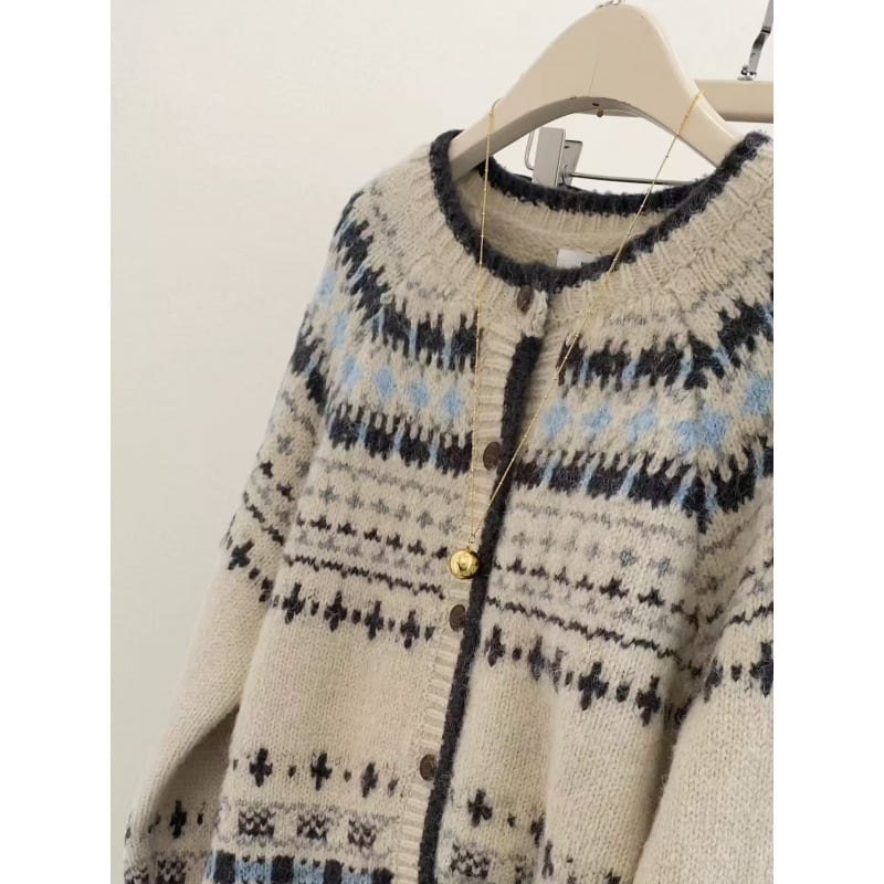 【カーディガン】 カーディガン レディース おしゃれ きれいめ 韓国 春 秋 冬 20代 30代 40代 ニット カーディガン 長袖 トップス ジャガード ベージュ