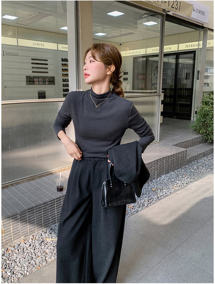 大人可愛いカットソー+ジレ+ワイドパンツのセットアップ。