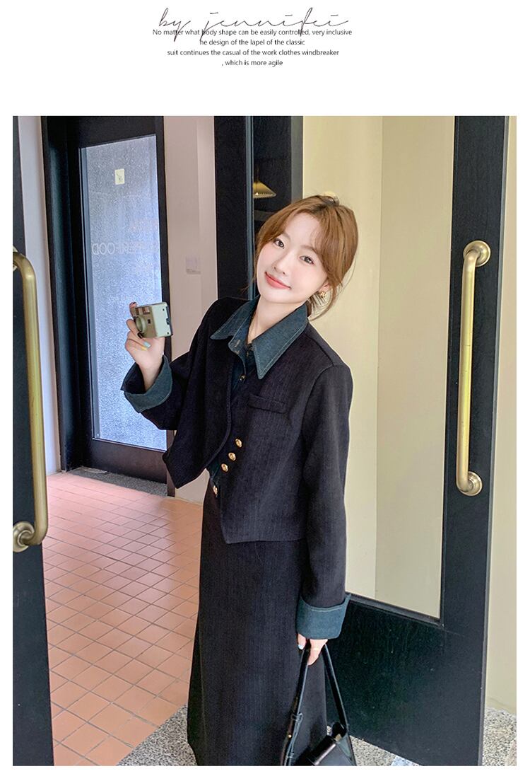 襟やお袖などデニム使いがさりげなくおしゃれな一点。