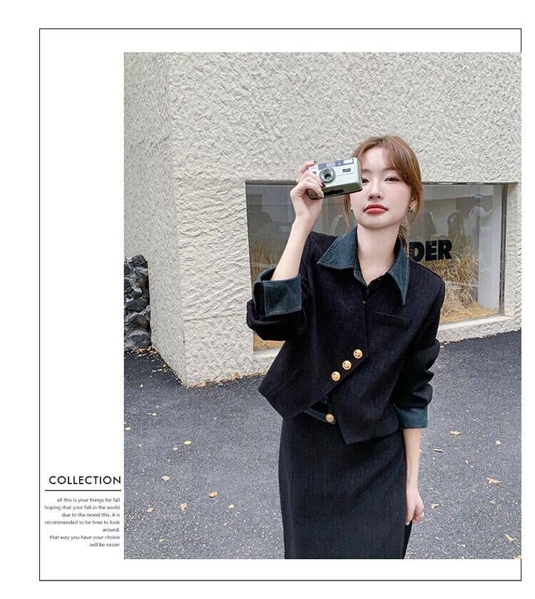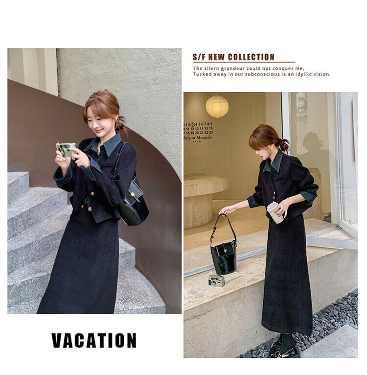 大人可愛いジャケット+aラインスカートのセットアップ。