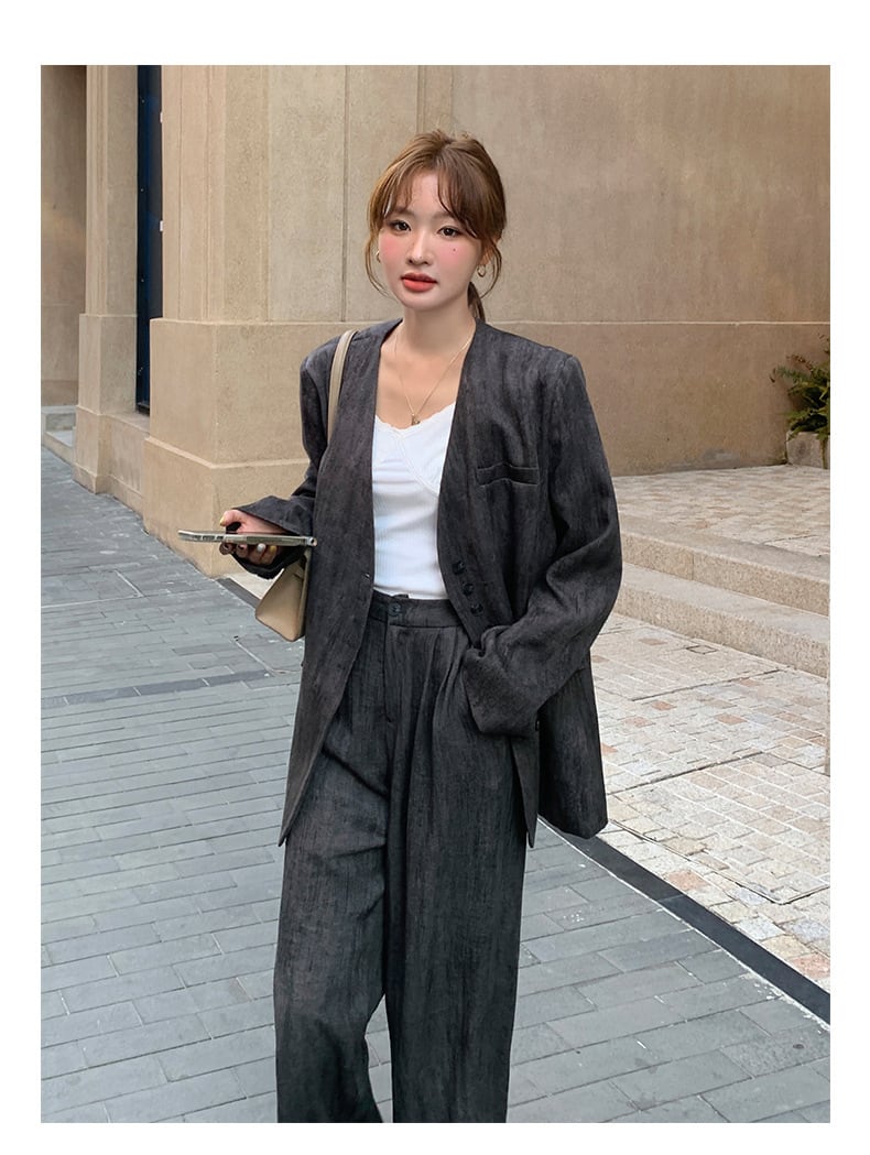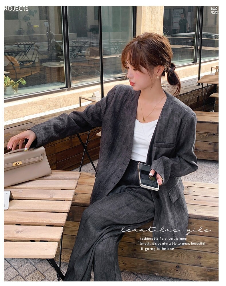 ノーカラー、ゆったりオーバーサイズでらくな着心地。