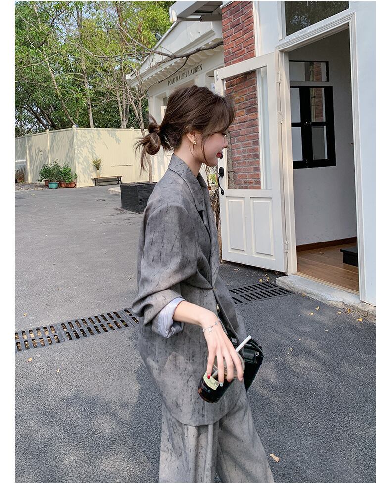 大人エレガントなプリント柄のセットアップスーツ。