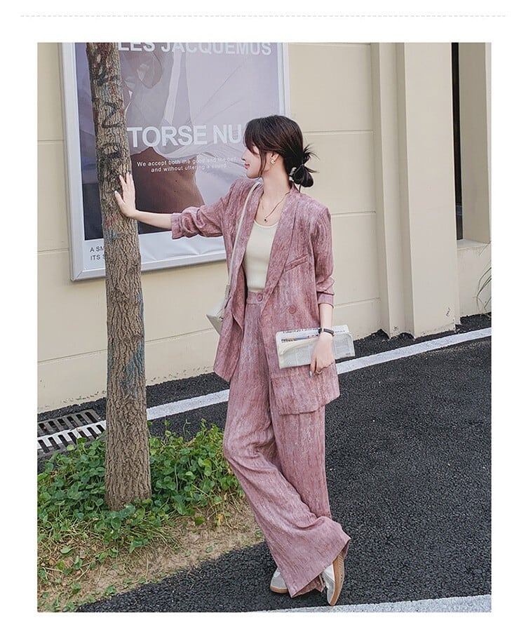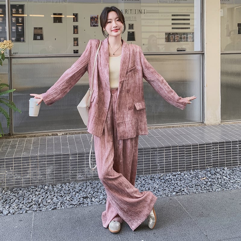 大人エレガントなタイダイ柄のセットアップスーツ。