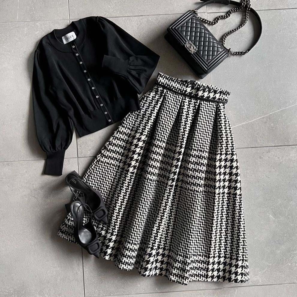 【スカート】フレア スカート レディース きれいめ 可愛い ハイウエスト ロングスカート 春 夏 秋 冬 20代 30代 40代 フレアスカート 千鳥格子 S M L XL