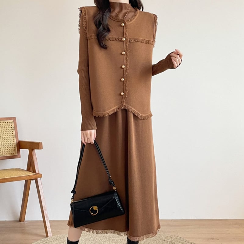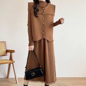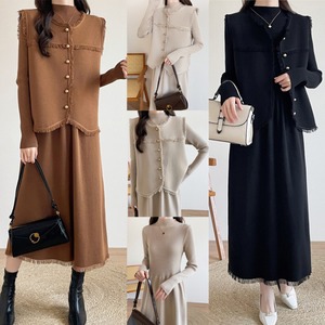 【セットアップ】 セットアップ レディース おしゃれ ママ ニット ワンピース ジレ ベスト 春 秋 冬 20代 30代 40代 きれいめ カジュアル 卒園式 入園式 卒業式 入学式 オケージョン キャメル 茶色 カーキ ブラック 黒
