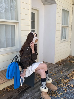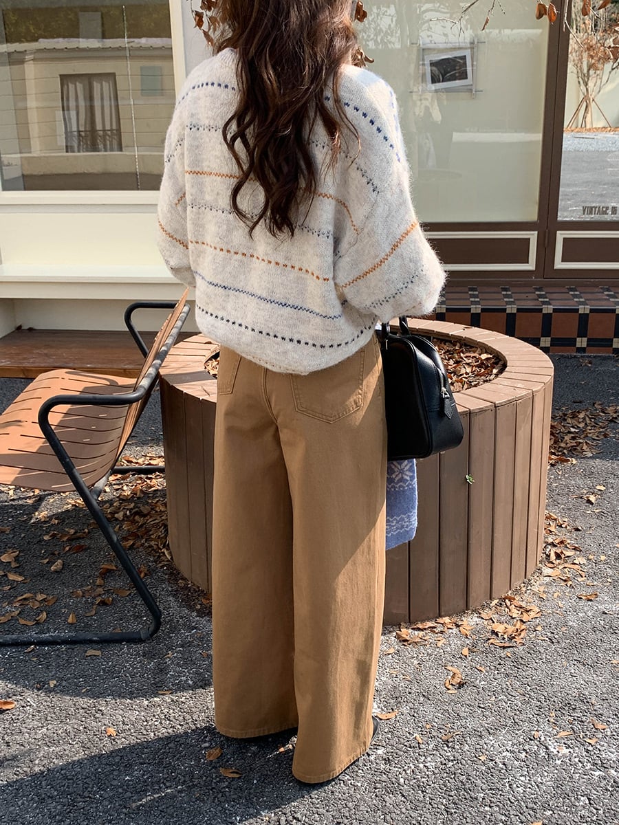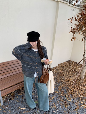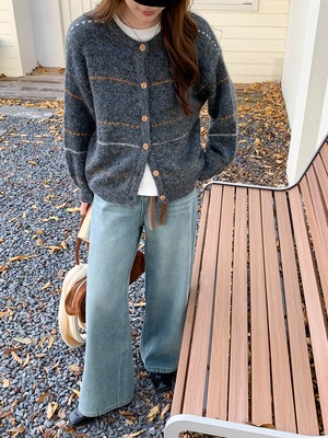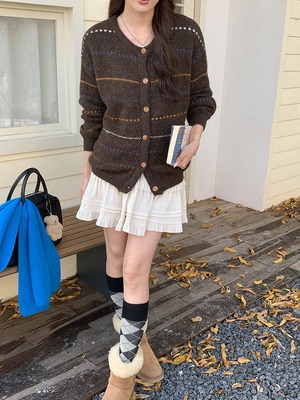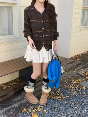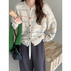 秋冬にぱっと映えるストライプ柄のカーディガン。