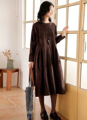 大人可愛いコーデュロイ素材のワンピース。