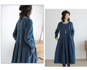 【ワンピース】 ワンピース レディース おしゃれ 冬 ワンピース きれいめ 可愛い 春 秋 冬 ロング ワンピース 20代 30代 40代 ワンピース 春秋 ワンピースドレス 韓国 ワンピース ドレス ワンピース コーデュロイ ブルー 青 ブラウン 茶色 S M L XL