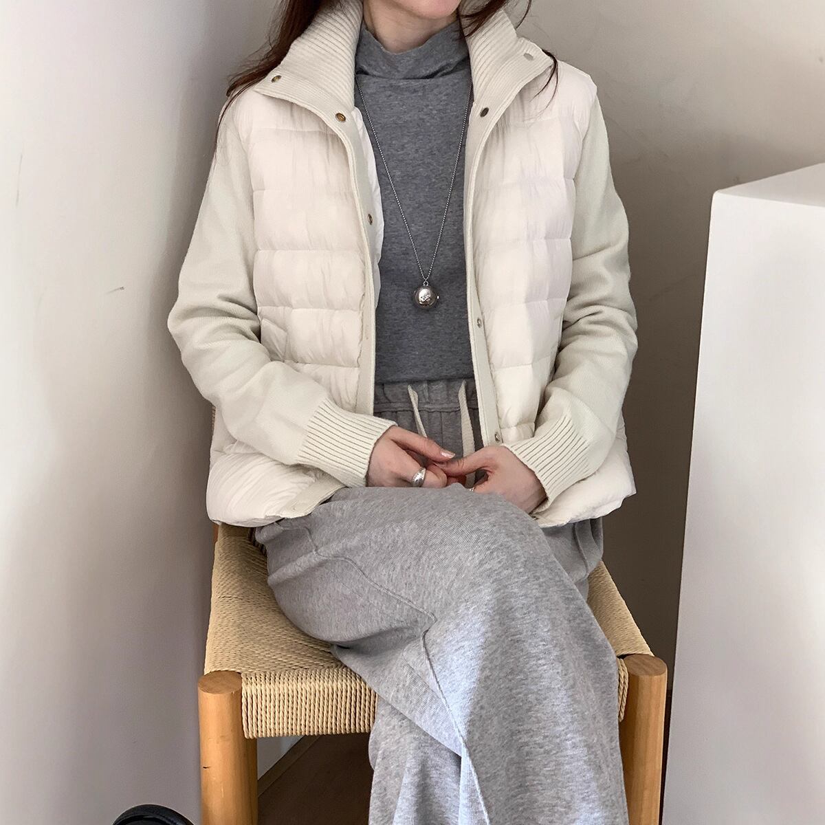 大人カジュアルなドッキングニットダウンジャケット。