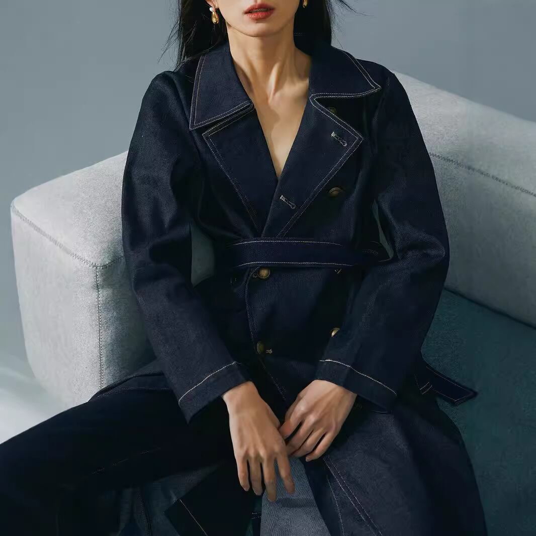 【コート】 トレンチコート デニム レディース きれいめ アウター 春 秋 冬 20代 30代 40代 ロング トレンチコート スプリングコート きれいめ おしゃれ シンプル ブルー 青 S M L