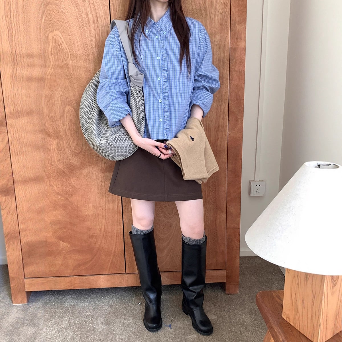 【シャツ】 シャツ レディース 大人 可愛い トップス シャツ ブラウス 韓国 ブラウス 春 秋 冬 20代 30代 40代 シンプル オフィス レディース フォーマル 体型カバー きれいめ 長袖 チェック ブルー 青 S M