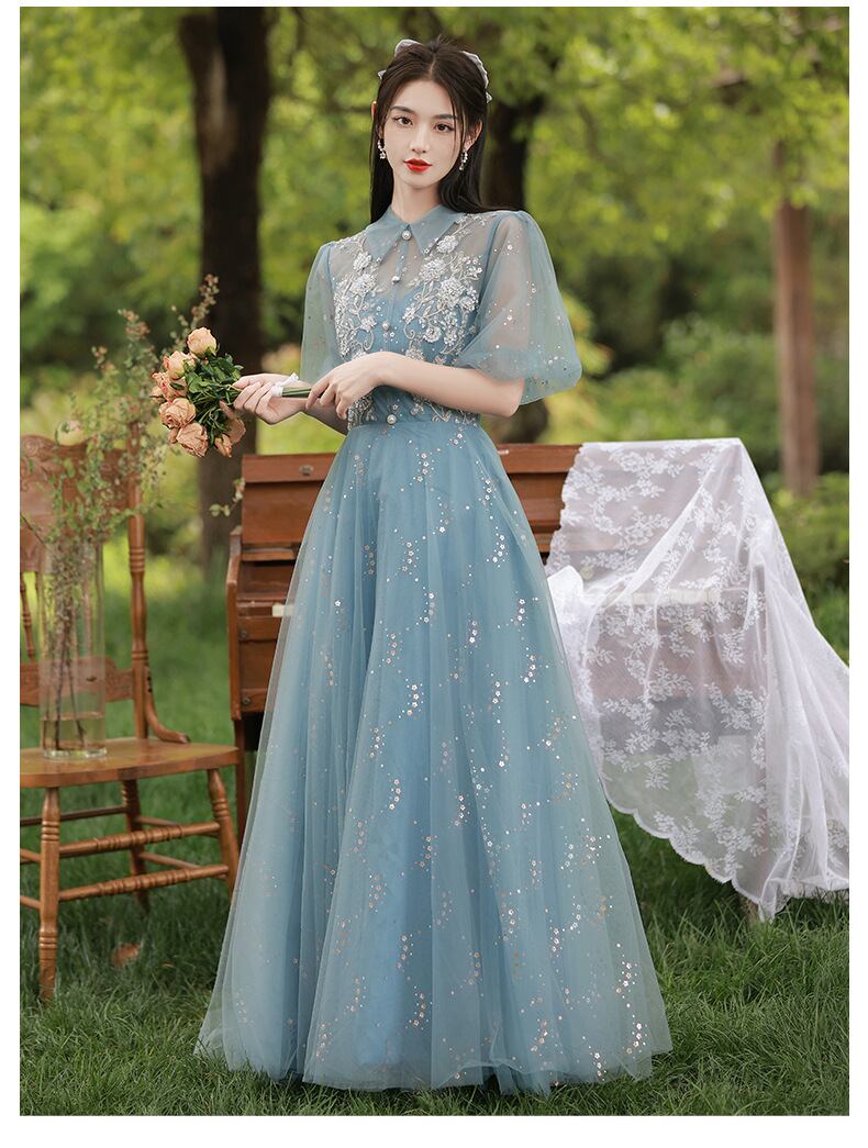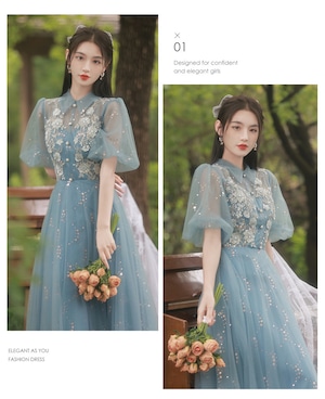 ちょこんと付いた襟が大人可愛いパーティードレス。