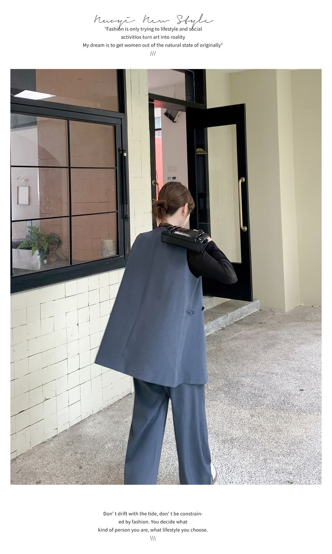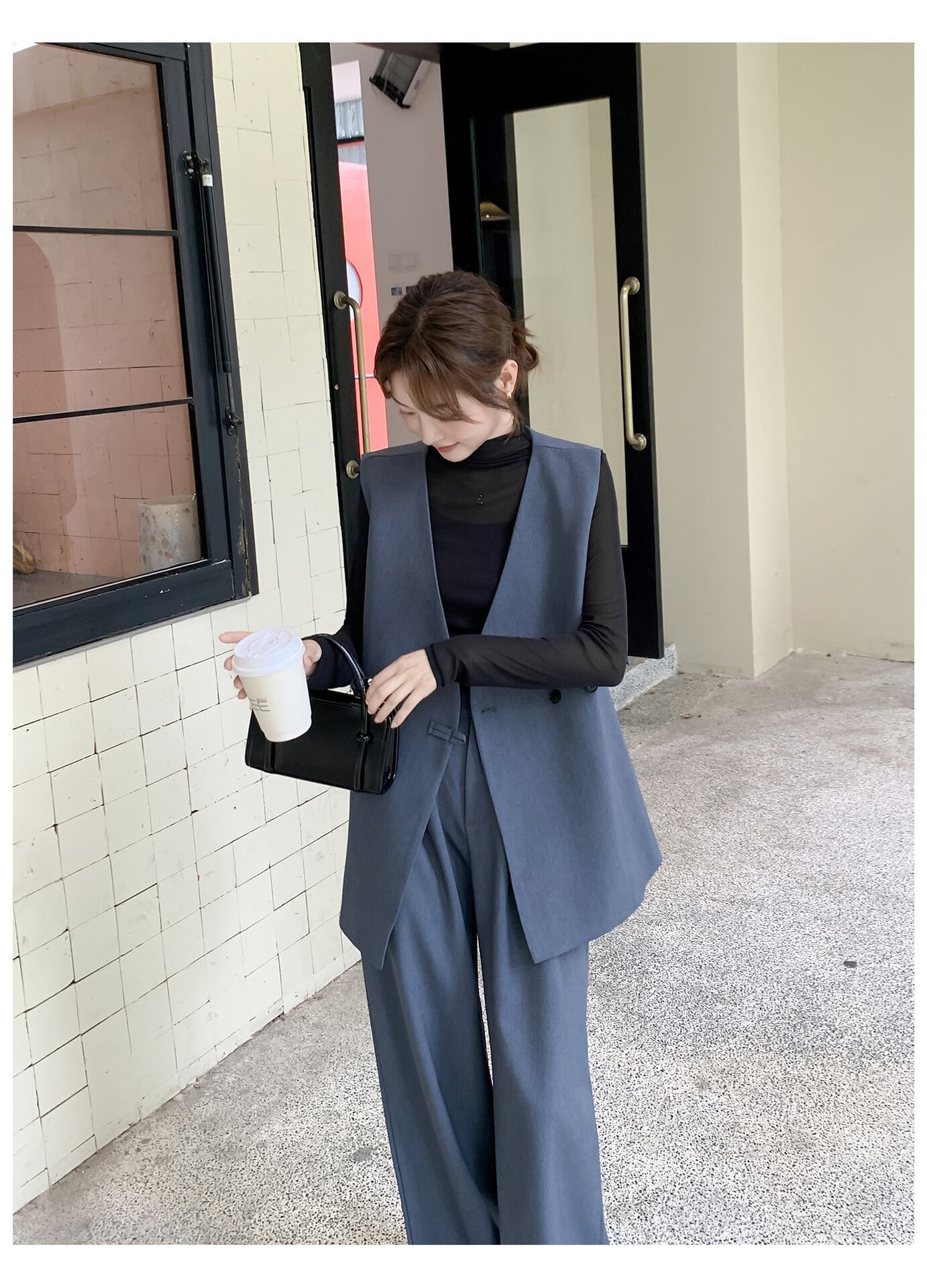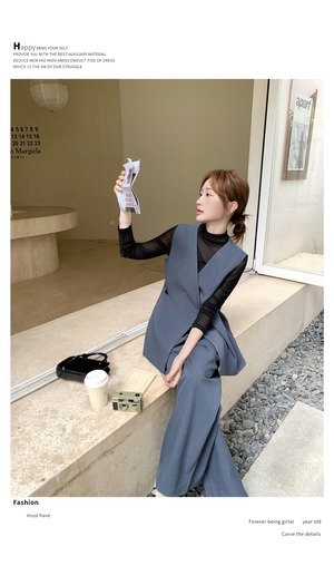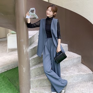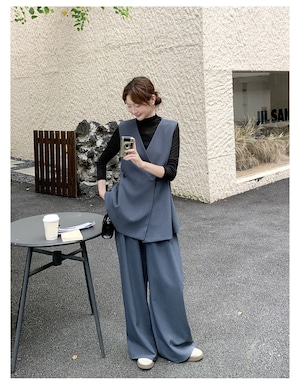 大人エレガントなジレベスト+ワイドパンツのセットアップ。