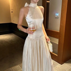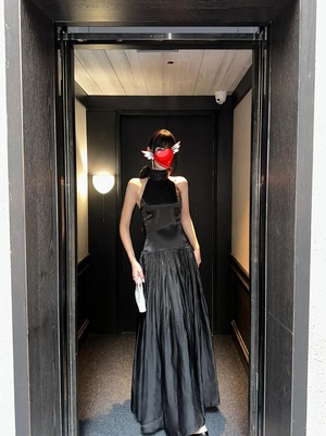 大人可愛いホルターネックのパーティードレス。