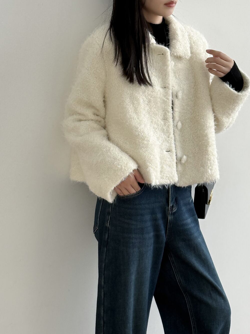【コート】ボアコート レディース きれいめ ショート 秋 冬 20代 30代 40代 可愛い ファーコート 韓国 アウター フォーマル きれいめ カジュアル ホワイト 白 ライトグレー M L