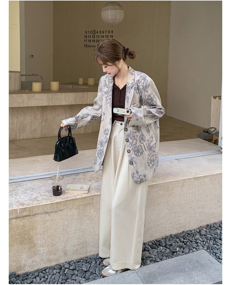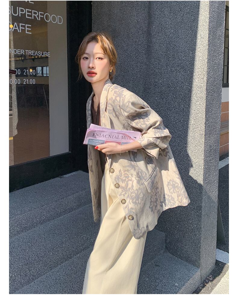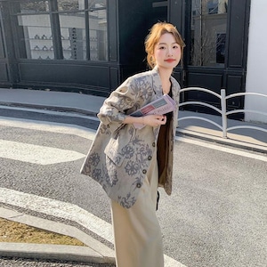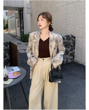 大人エレガントな花柄のテーラードジャケット。