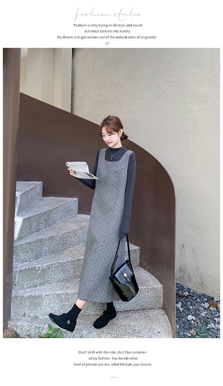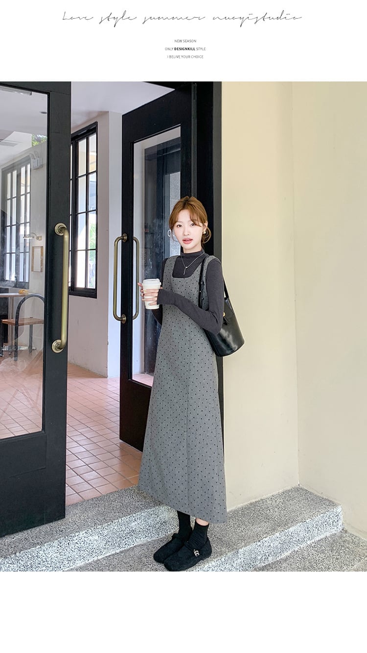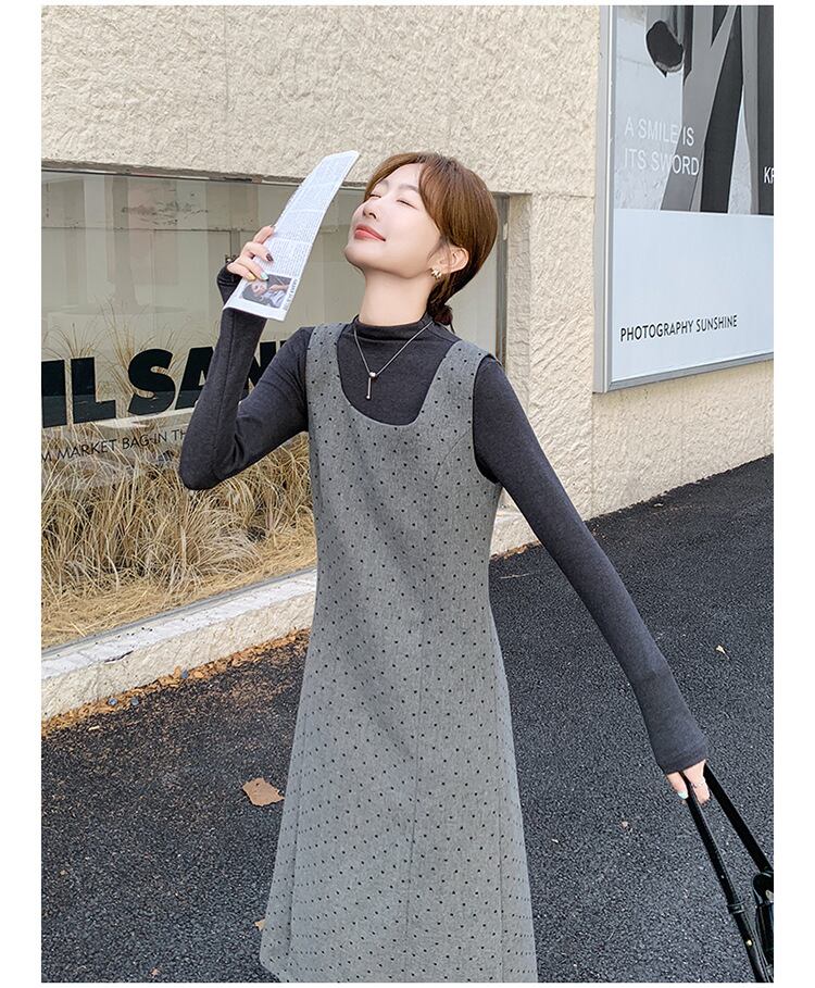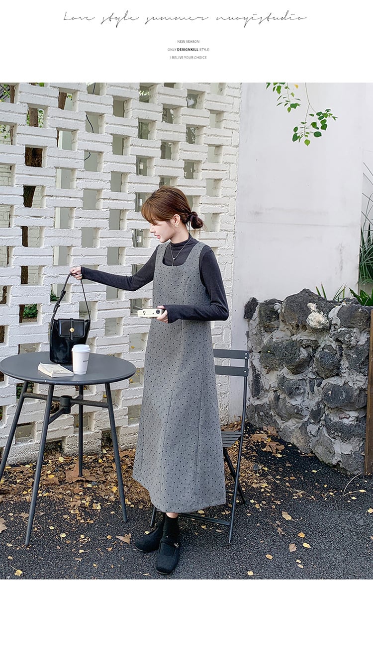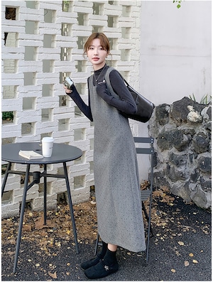 大人可愛いカットソー+ジャンパースカートのセットアップ。