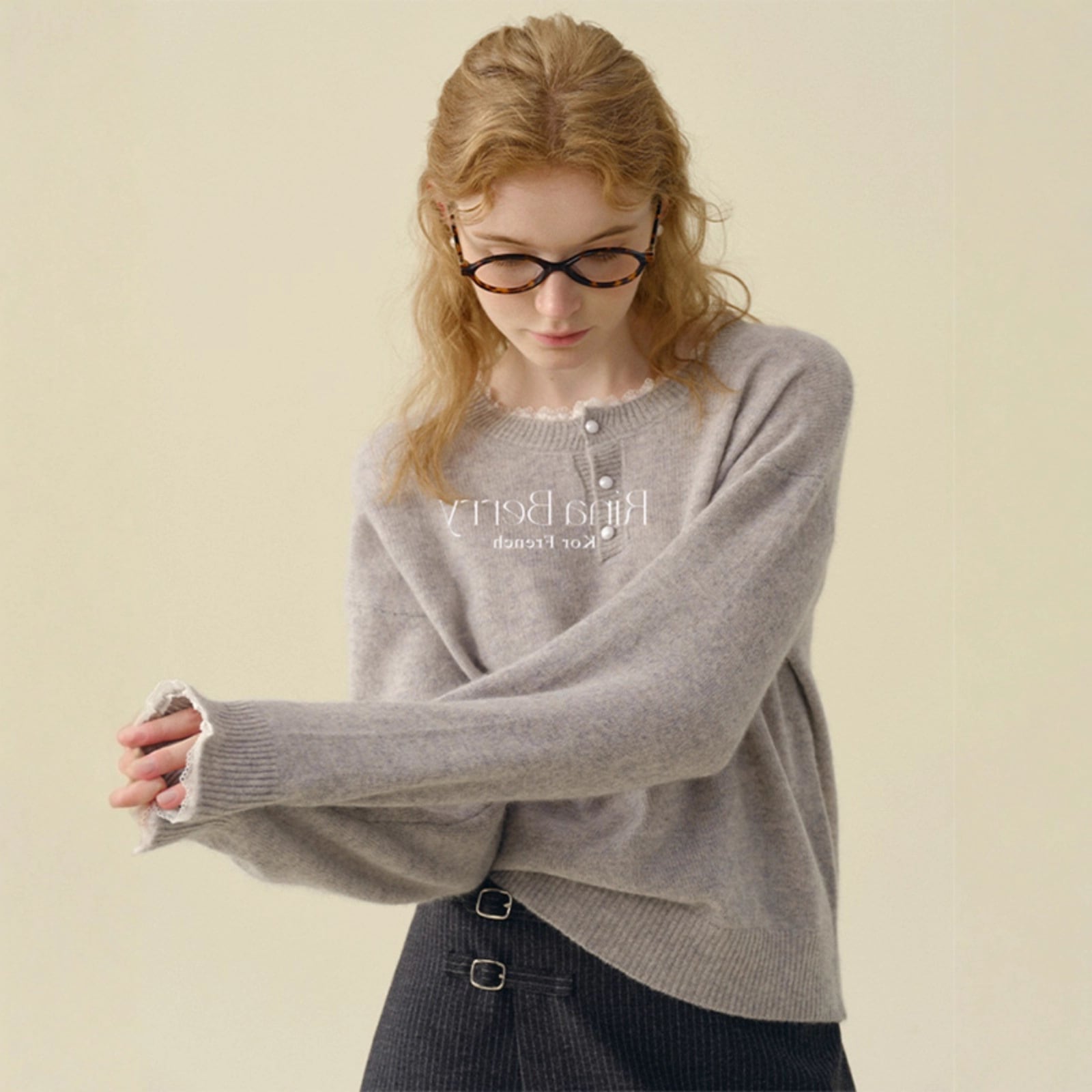 大人可愛いゆるめニットセーター。