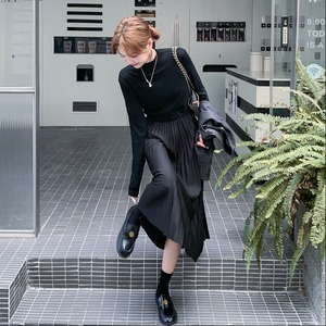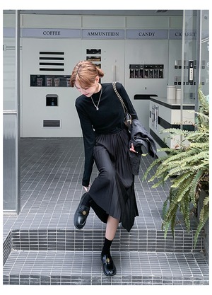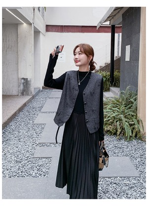 大人可愛いジレベスト+プリーツワンピースのセットアップ。