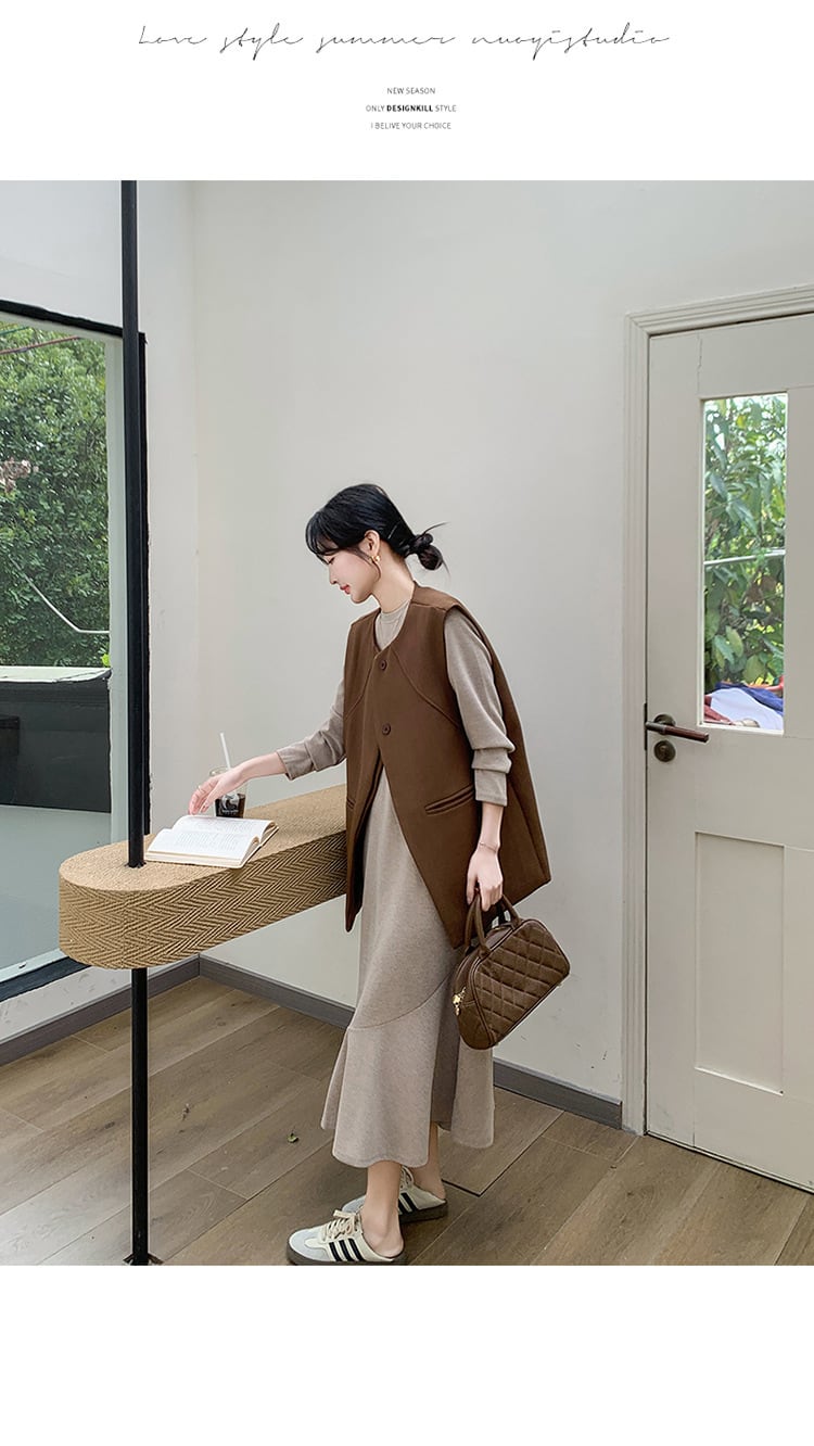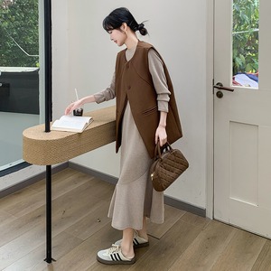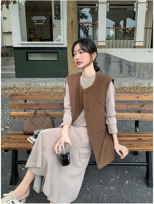 大人可愛いジレベスト+スウェットワンピースのセットアップ。