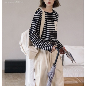 【カットソー】 カットソー レディース カットソー tシャツ 春 秋 冬 20代 30代 40代 長袖 レディース カットソー tシャツ カットソー トップス 大人 可愛い きれいめ ボーダー ネイビー 青 S M L XL