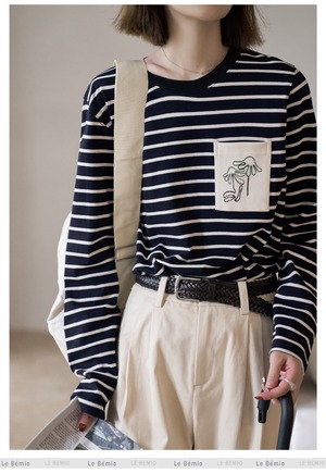 大人可愛いボーダーのシンプルなカットソー。