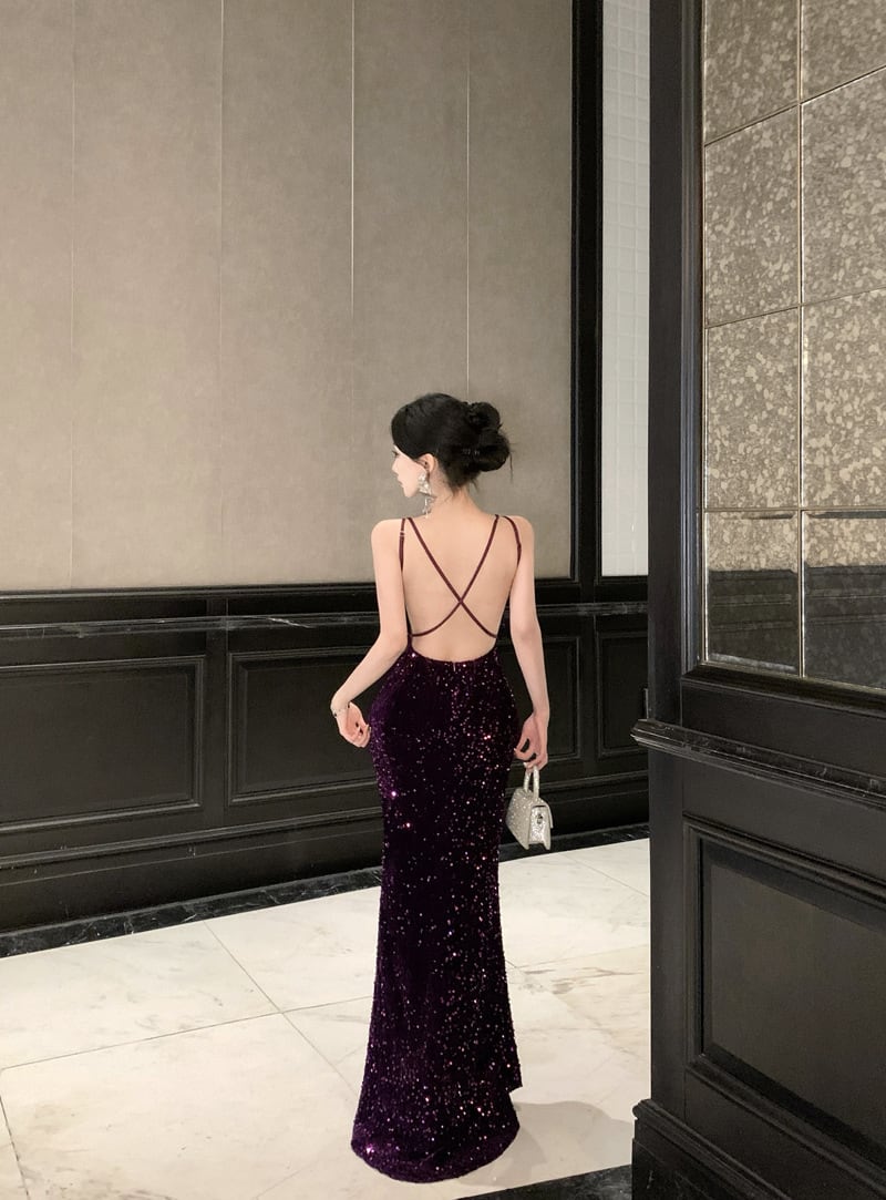バックオープンな後ろ姿がちょっぴりセクシーなパーティードレス。