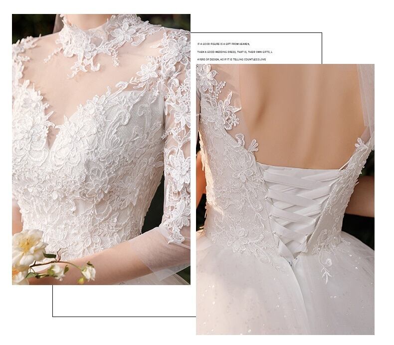透け感あるお袖のレース使いがエレガントなウェディングドレス。