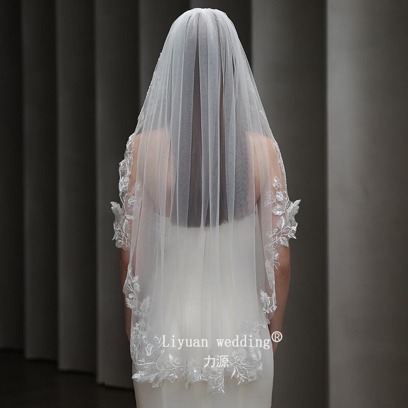 レース感がエレガントなミドル丈のウェディングベール。