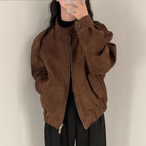 大人カジュアルでシンプルなブラウンカラーのブルゾン。