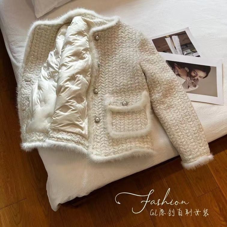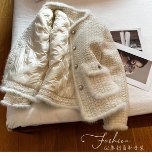 大人エレガントなノーカラーのツイードジャケット。